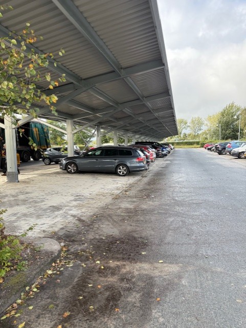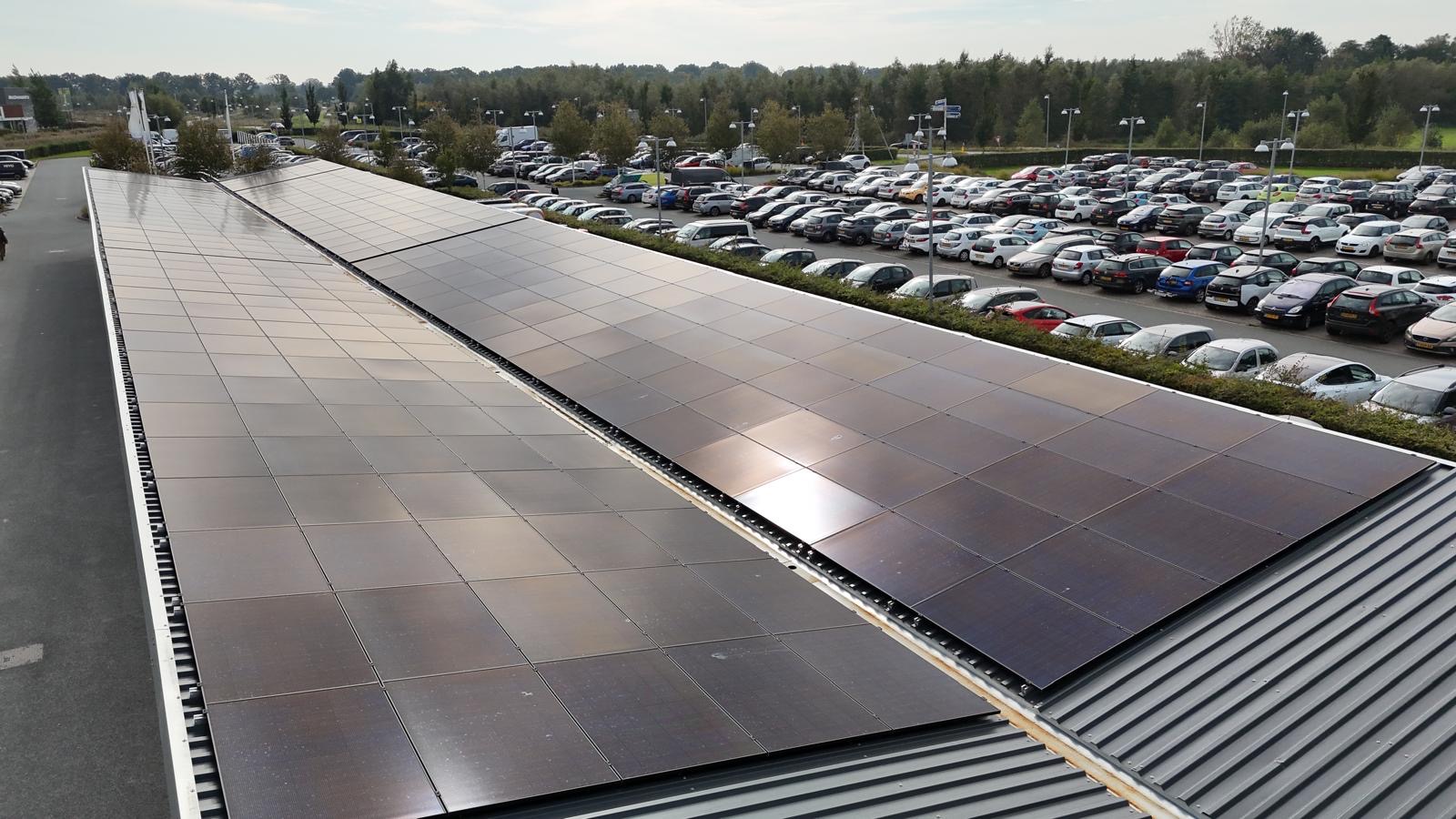 De moderne overkapping biedt hotelgasten niet alleen een beschutte parkeerplaats, maar wekt tegelijkertijd schone zonne-energie op.