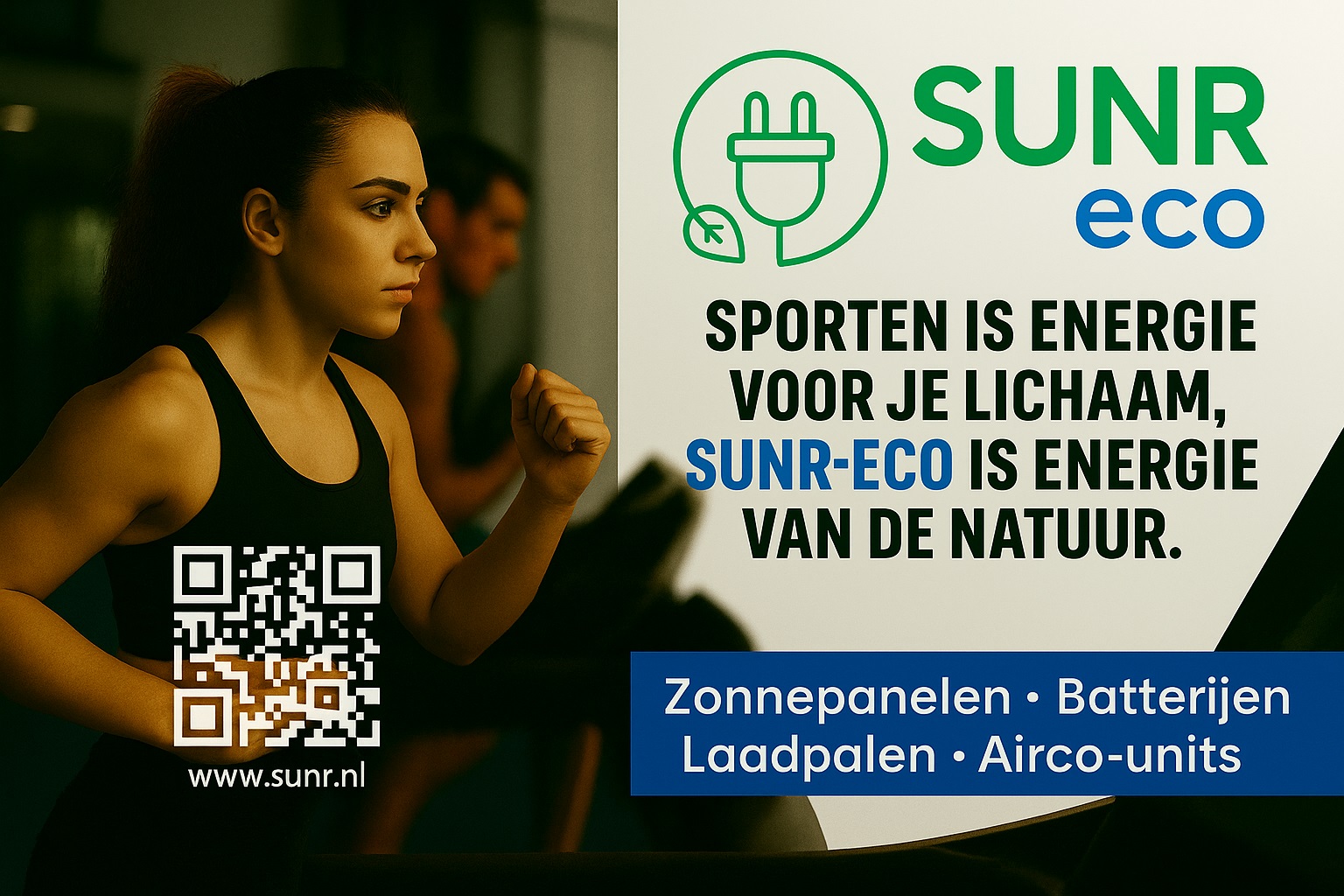 Bij SUNR-ECO geloven we in duurzame kracht — voor mens én milieu. Terwijl jij werkt aan je conditie, zorgen wij voor groene energie die je leven voedt.